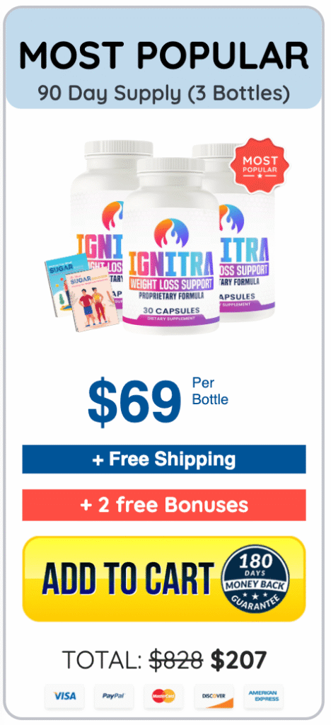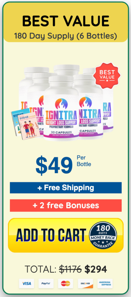 Right now, you can order Ignitra for just $49 per bottle when you choose the 180-day supply (6 bottles) — and FREE shipping is included.